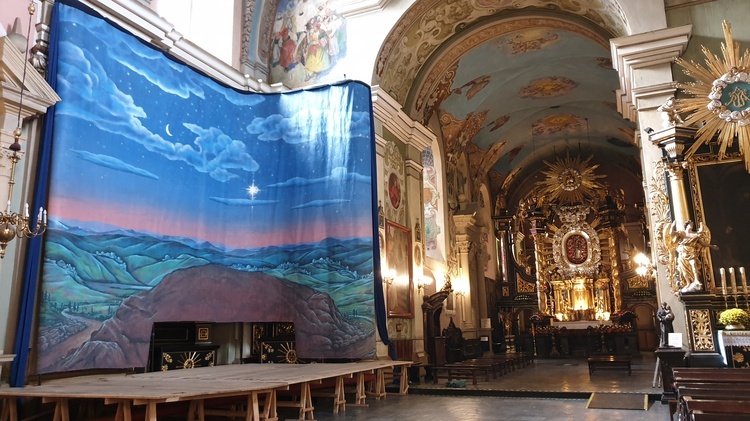 W bazylice znajdują się już podest, który zajmuje ok. 30 mkw., oraz panorama Betlejem o wymiarach 11 na 8 metrów. W szopce, jak co roku, nie zabraknie nowych figur przywiezionych z Włoch. W sumie znajduje się w niej ok. 150 elementów, w tym ponad 50 ruchomych.