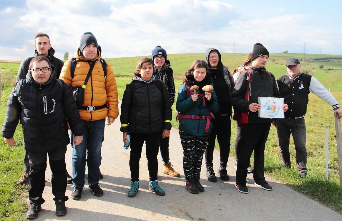 Z Krakowa grupa wyjechała wcześnie rano pociągiem, by najpierw dotrzeć do Makowa Podhalańskiego i zawitać do sanktuarium Matki Bożej Opiekunki i Królowej Rodzin. Później znów wsiedli w pociąg i przyjechali do Pyzówki, skąd rozpoczęli pieszą wędrówkę, na którą zaprosili naszą redakcję. Teraz idziemy już razem w stronę Ludźmierza. - Znalazłam je, gdy szliśmy przez las! - cieszy się Justyna, najmłodsza uczestniczka wycieczki (ma nieco ponad 20 lat) i pokazuje dorodne podgrzybki. Ma plan, by w Ludźmierzu, gdzie grupa będzie nocować, dać je paniom kucharkom, by wrzuciły grzyby na patelnię. Justyna lubi wędrować, bo z tatą chodziła po górach, ale na takiej wycieczce jest po raz pierwszy. Wszystko byłoby super, gdyby nie fakt, że dziś trochę otarły ją buty. Nie traci jednak dobrego humoru i chętnie opowiada o codzienności w ŚDS. W rozmowę włącza się też Irek, który idąc robi dużo zdjęć. Dokumentuje wszystkie wydarzenia w ośrodku i pomaga w redagowaniu wydawanej tam gazetki. Cieszy się, że może być na tak długim wyjeździe, bo to cenne oderwanie od codzienności.