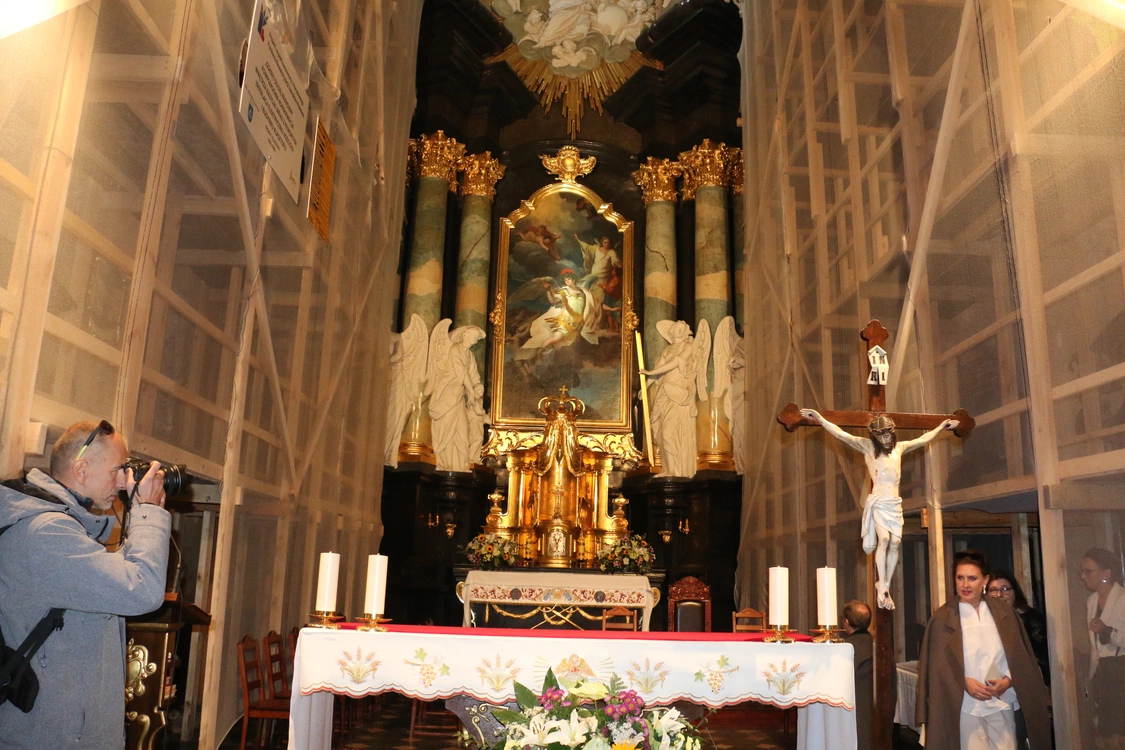 W prezbiterium bazyliki trwają już prace konserwatorskie.