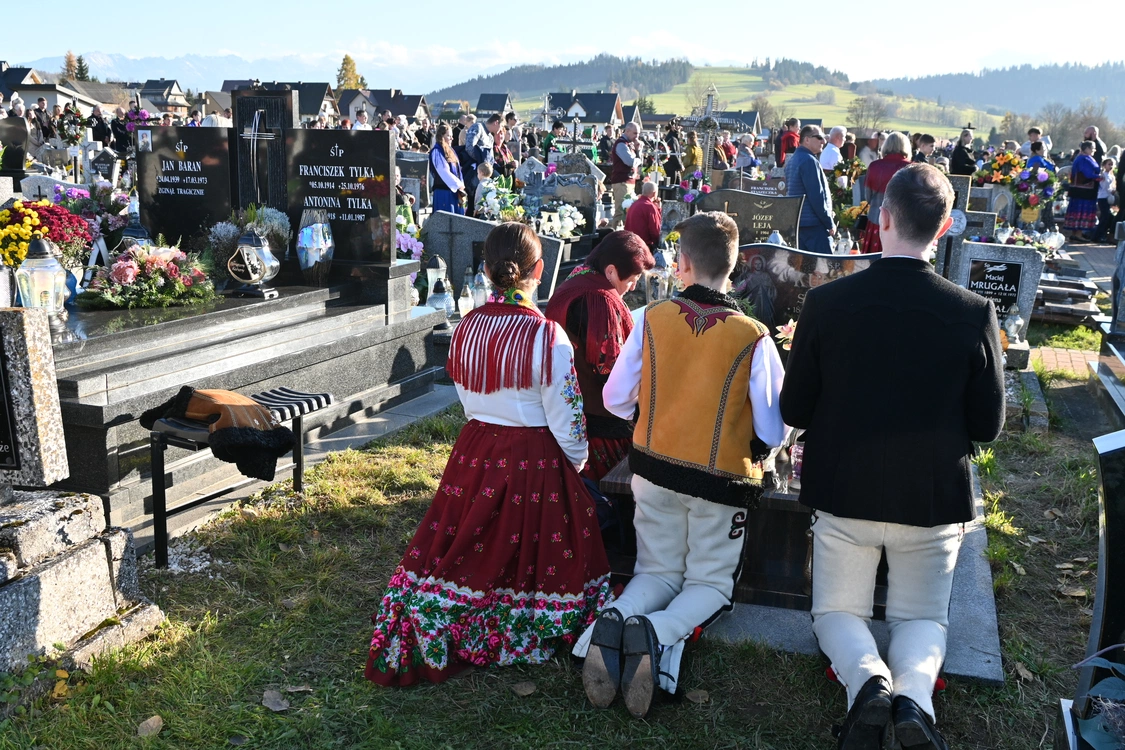 Górale nawiedzają groby swoich bliskich na cmentarzach, przychodzą tam często w strojach regionalnych i modlą się na Mszach św. odprawianych na nekropoliach. Tak było 1 listopada, m.in. w Miętustwie.