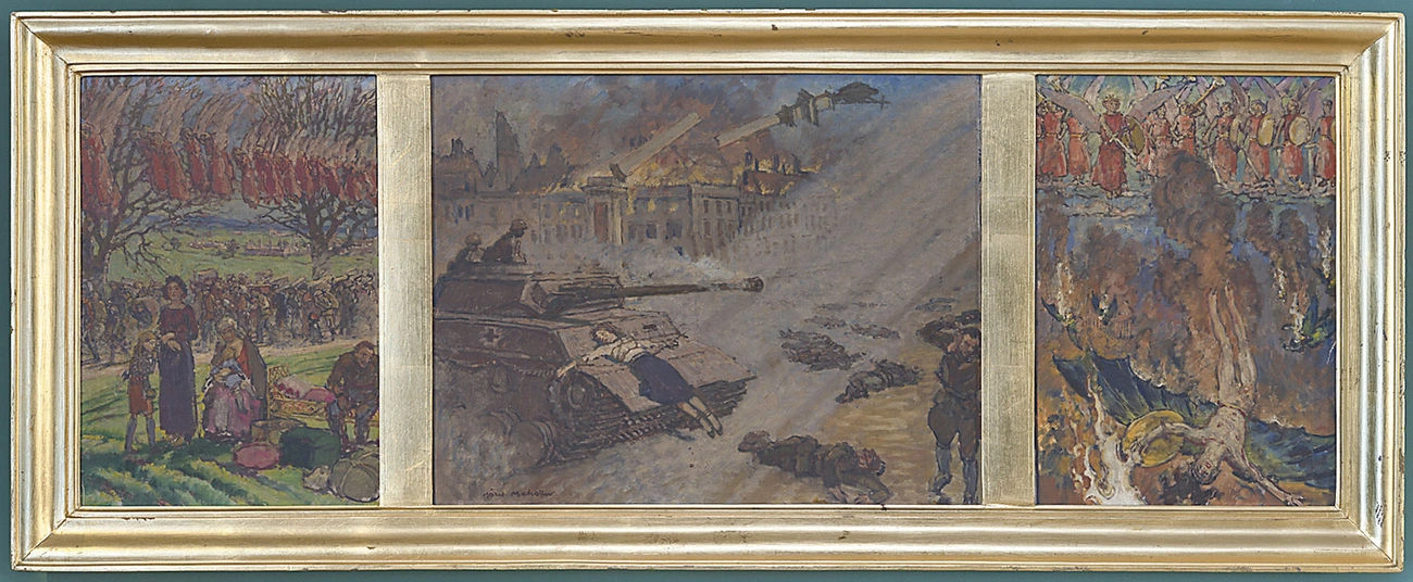 Wiedziano wprawdzie, że taki tryptyk powstał, ale nie znano jego losów. – To dzieło trafiło do nas jako depozyt Beskidzkiego Muzeum Rozproszonego Diecezji-Bielsko Żywieckiej i jest eksponowane w Domu Józefa Mehoffera – wspomniał 12 stycznia prof. Andrzej Szczerski, dyrektor MNK, w trakcie spotkania noworocznego z mediami. Na centralnym miejscu tryptyku widnieje wyobrażenie walk powstańczych na Starym Mieście, dopełniają go zaś dwie sceny alegoryczno-symboliczne. Artysta malował to wszystko w swym domu przy ul. Krupniczej na przełomie lat 1944 i 1945, na podstawie relacji uczestników powstania warszawskiego. Historycy sztuki oceniają, że tryptyk cechuje bardzo dobry poziom artystyczny i jest jedną z nielicznych znanych, rozbudowanych kompozycji olejnych późnej fazy twórczości artysty.
