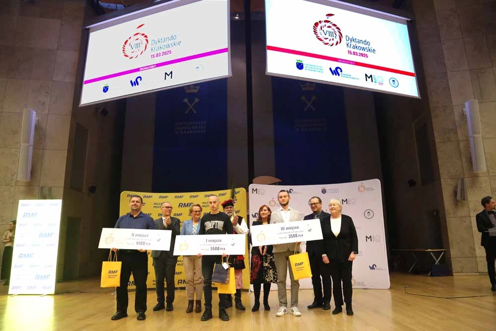 Już po raz ósmy w głównej sali Auditorium Maximum Uniwersytetu Jagiellońskiego odbyło się dziś Dyktando Krakowskie. Mistrzem ortografii został w tym roku Piotr Schabowski, a w kategorii juniorów zwyciężyła Aleksandra Gach.